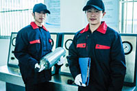 空氣呼吸檢測實(shí)驗(yàn)室有報(bào)警器測試臺,主要用于測試空呼內(nèi)部壓力。減壓器測試臺,用于測試每一個(gè)出廠的空呼呈否存在漏氣現(xiàn)象。SY-Ⅲ型氣瓶水壓測試裝置,用于測試瓶閥爆破壓力。高低溫測試箱,用于測試溫度范圍。HX-Ⅱ型呼吸器綜合檢測儀,用于測試動態(tài)呼吸阻力、靜態(tài)壓力以及供氣閥的開啟壓力。充氣室中還配有空氣壓縮機(jī)用于對氣瓶充氣以及做氣密性檢測。