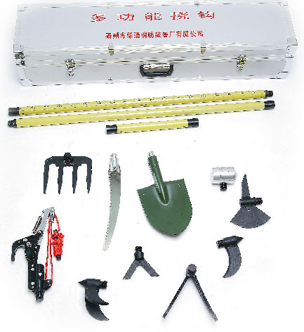 ·多功能撓鉤是在消防撓桿基礎(chǔ)上采用一桿多頭的形式,包括消防斧、木相映、爪耙、接桿(水平和標(biāo)高測量尺、探路棒)撐頂器、消防鋸、消防剪等多種破拆救援工具。是消防部隊在火災(zāi)撲救和搶險救援中常用的一種破拆類工具。