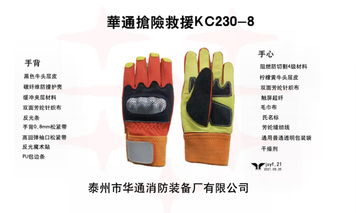 符合《消防員搶險救援防護(hù)服裝試驗(yàn)大綱》標(biāo)準(zhǔn),提供國家級權(quán)威檢驗(yàn)機(jī)構(gòu)出具的檢測報告復(fù)印件或掃描件。手套五指分離式,在搶險救援作業(yè)時對消防員手部和腕部提供保護(hù)。手背關(guān)節(jié)處采用碳纖維硬殼,具有防磕、撞設(shè)計。