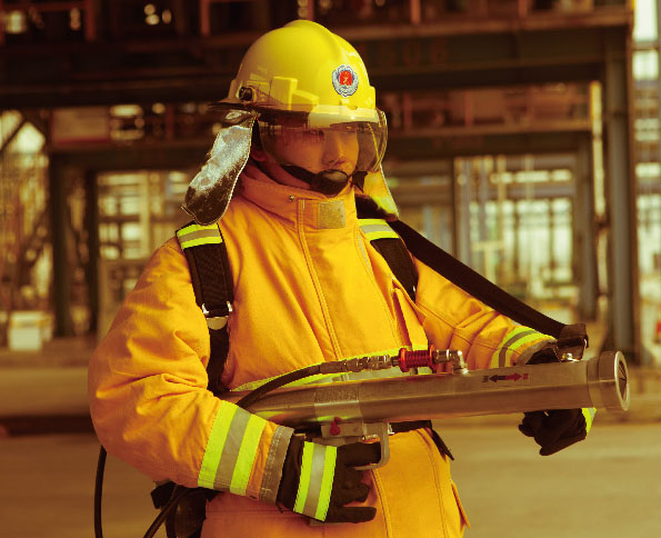 利用急速膨脹的壓縮空氣與水撞擊后混合并以脈沖形式噴射水霧,沖入火焰中心,使燃燒物體迅速降溫,從而達(dá)到急速滅火目的。